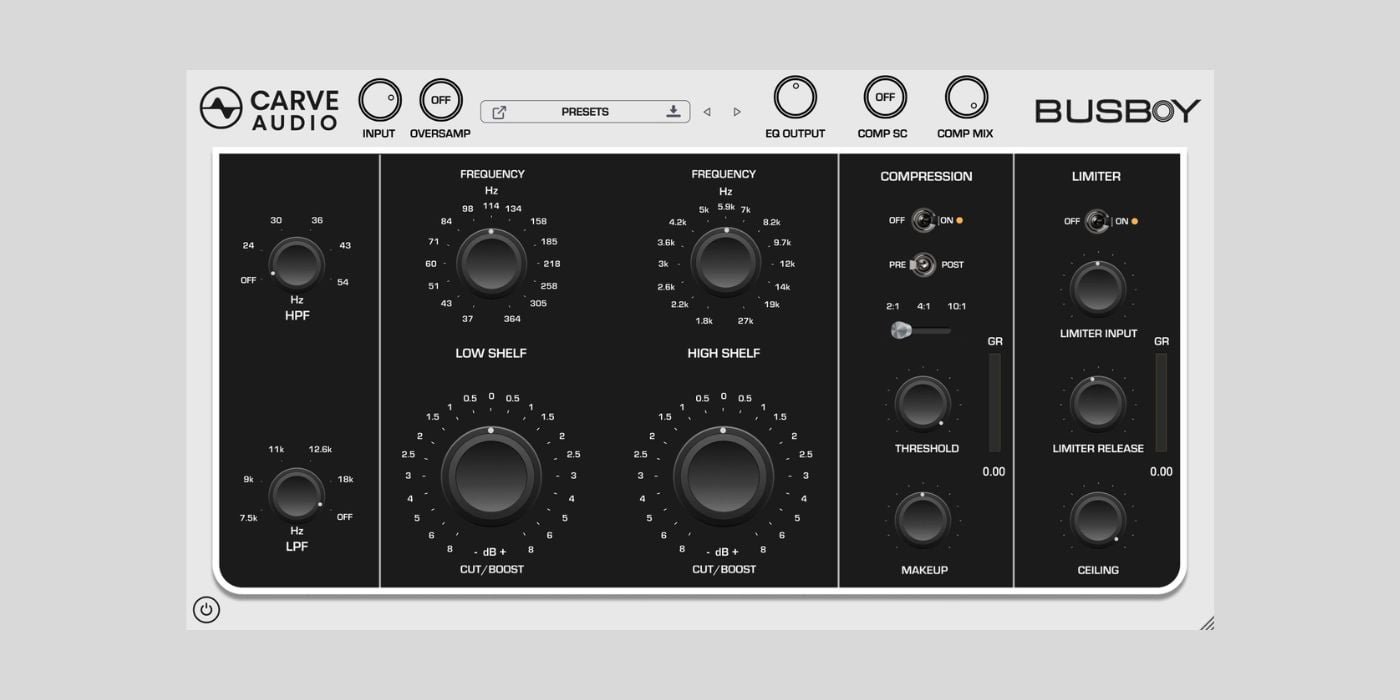 The main idea here is to help you establish a solid tone quickly. Instead of stacking multiple plugins for filtering, EQ, compression, and limiting, BusBoy brings all of those essentials into a single interface focused on speed.